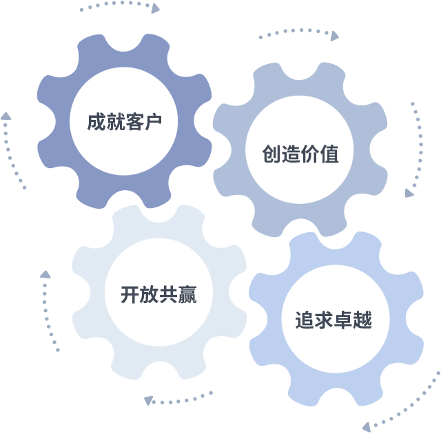 成就客户是一切决策的出发点,创造价值是衡量所有工作的标准,追求卓越是8383做事做人的态度,开放共赢是8383的格局也是最终的结果。价值观的齿轮环环相扣,推动着组织里的每个人不断向前。
